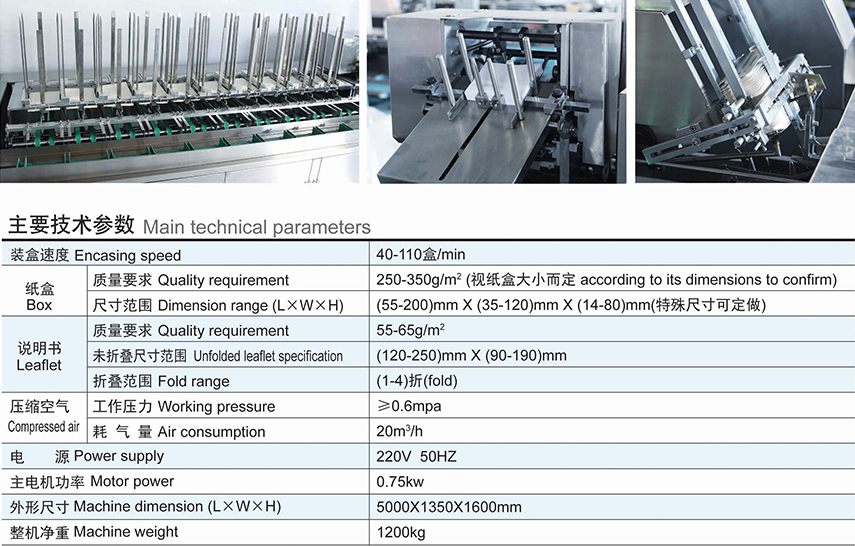 本產(chǎn)品是我公司結(jié)合國(guó)外裝盒機(jī)的先進(jìn)技術(shù)及根據(jù)國(guó)內(nèi)制藥行業(yè)的實(shí)際情況而研發(fā)的擁有新型、具有先進(jìn)的多功能自動(dòng)裝盒機(jī),是機(jī)、電、氣、光一體化的高科技產(chǎn)品。本產(chǎn)品適用于制藥廠的膏藥片、面膜、四邊封的顆粒粉裝袋,三邊封的顆粒粉裝二連袋以及相類似物品的裝盒包裝,該機(jī)具有自動(dòng)完成使用說(shuō)明書的折疊、紙盒自動(dòng)打開、物品帶說(shuō)明書裝盒,打印批號(hào)、封盒等功能。該機(jī)可以單獨(dú)使用亦可以與其他設(shè)備聯(lián)動(dòng)使用,形成聯(lián)動(dòng)生產(chǎn)線。